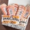 ももハムスライス:ローズポーク(茨城県産)、食塩、砂糖、香辛料、リン酸、塩(Na、K)、酸化防止剤(ビタミンC)、調味料(アミノ酸)、発色剤(亜硝酸Na)
