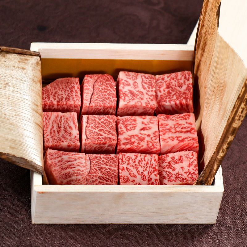 すべて手切りの常陸牛を食べ比べできるひとくちサイズの高級ステーキ肉ギフト。 常陸牛吟撰手切りひとくちステーキ みすじとサーロイン300g