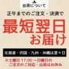 上記日付について、実店舗も休業となっておりまして、通販の対応はお休みとなります。