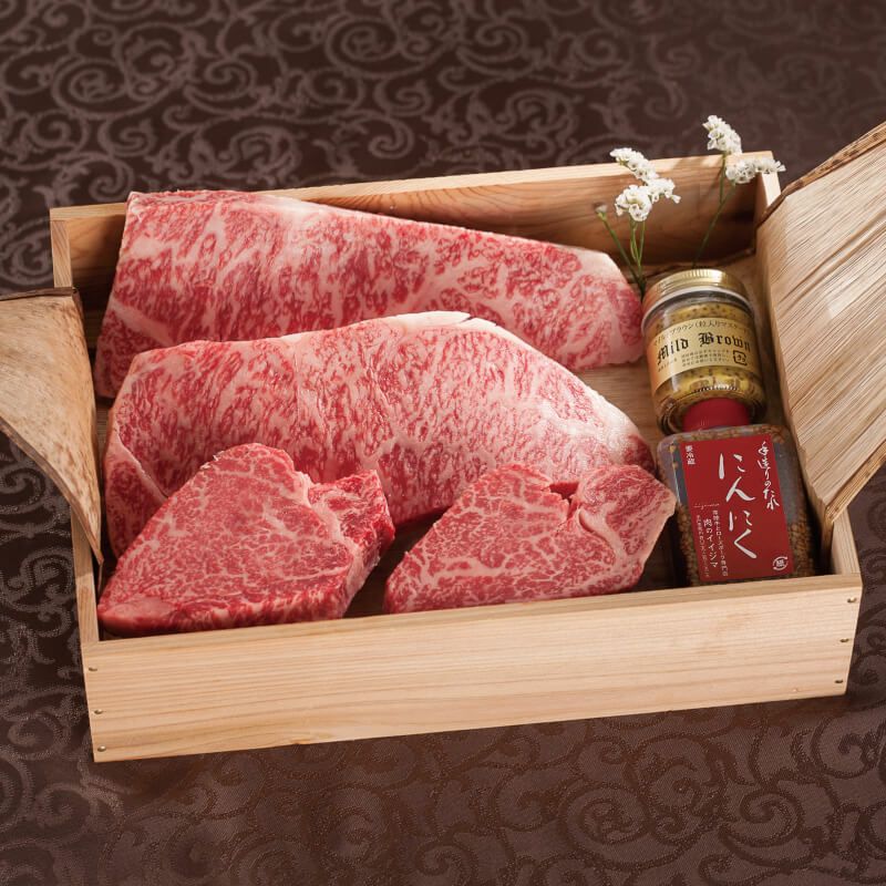 ステーキの最高部位2種類のセット。特別な日のプレゼントやお世話になった方へ御礼などにピッタリの品です。 常陸牛吟撰サーロイン&フィレ食べ比べセット 各2枚入り