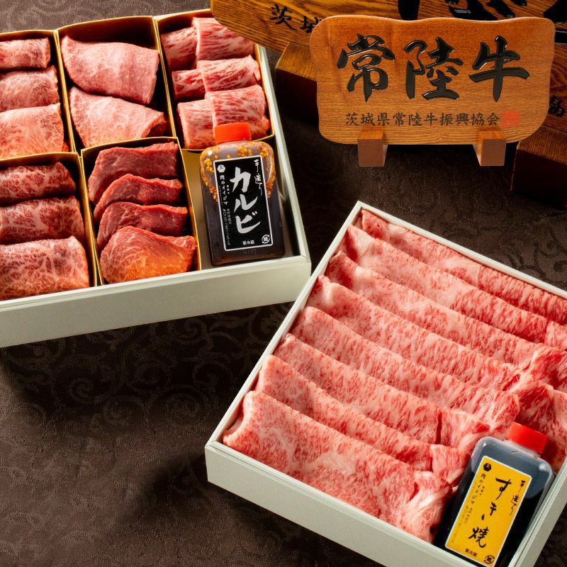 常陸牛サーロインすき焼き450gと、選び抜かれた高級部位5種の焼肉。
