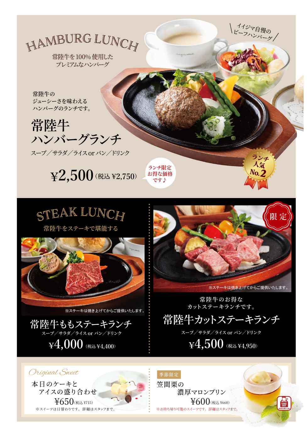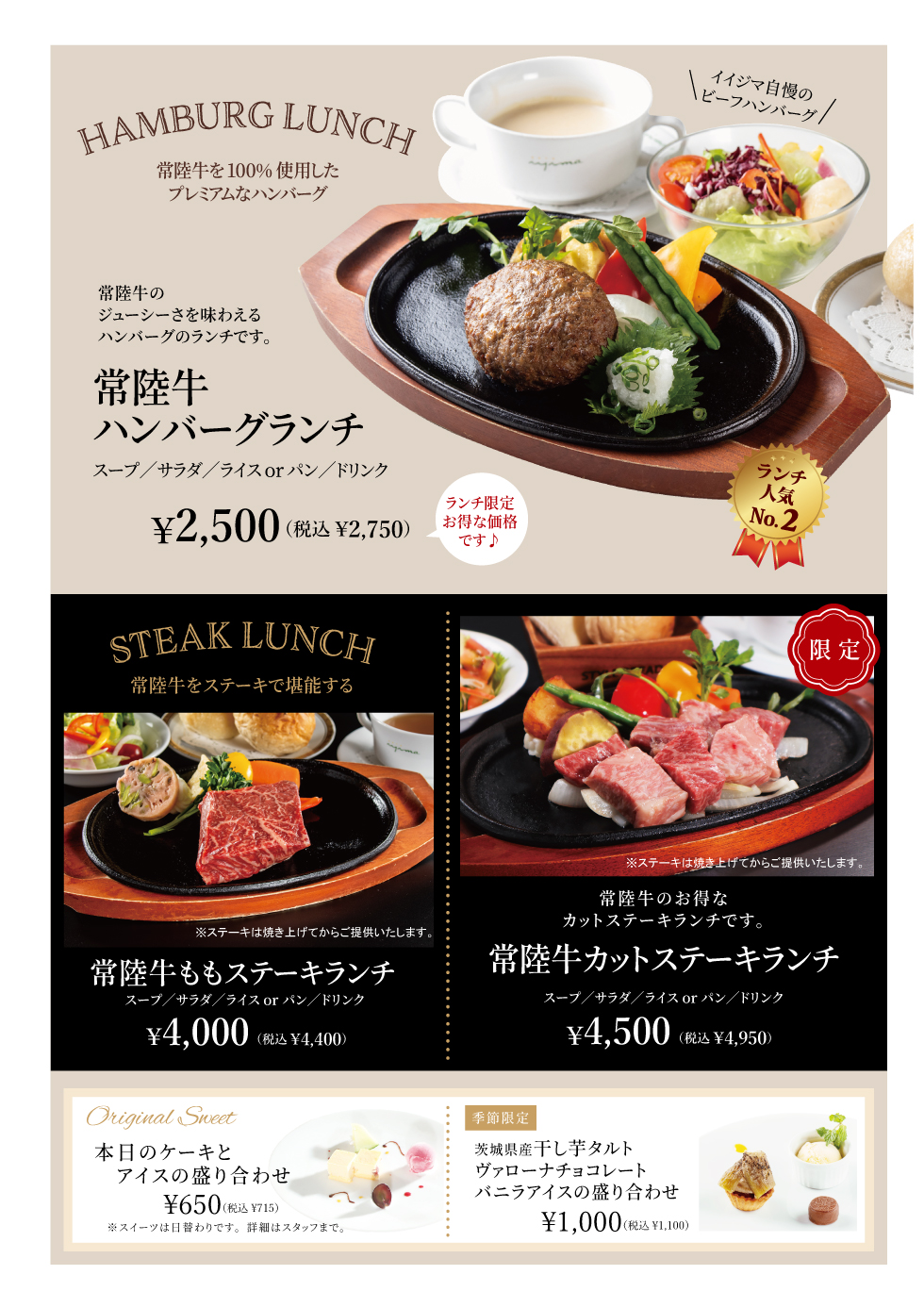ランチタイムはランチ以外のグランドメニュー等もご注文いただけます。