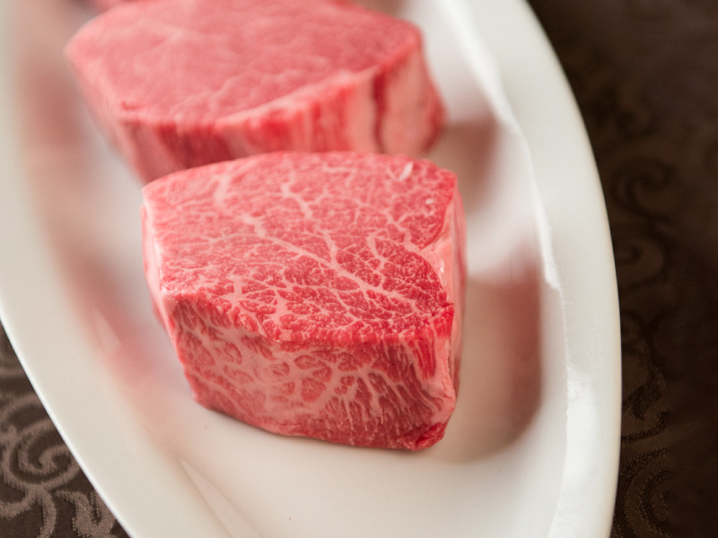フィレの最も太い中心部分。一頭からわずか約600gしか取れない世界最高峰の超希少部位。19世紀のフランス貴族シャトーブリアン子爵のために考案されたとも言われます。やわらかさと旨みは他の追随を許しません。