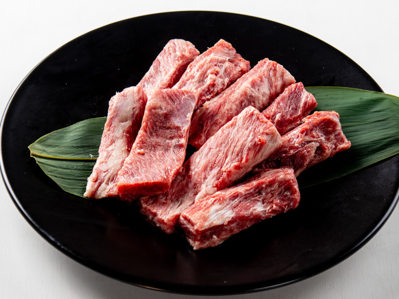 あばら骨と骨の間に挟まった肉。スプーンでこそぎ取るため少量しか取れない希少部位。骨に近いため旨みが非常に濃く、骨付きで提供されることもあります。焼肉通には堪らない一品。